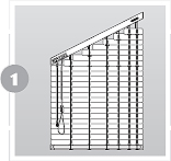 Sonderform Nr. 5 (Viereck, Trapez)Form 5a Nur Lamellenwendung möglisch Form 5b Schnurzug zum Heben und Senken des Behanges Breite der Oberschiiene min. 14 cm, Basibreite min. 30 cm. Differenz zwischen der Oberschiene und der Unterschiene max. 50 cm. | |