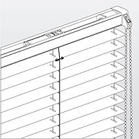 Die 25 mm Jalousie eignet sich für die Montage an Fenstern von 0° bis 45° Dachneigung. Die Jalousie wird bis 80 cm Breite mit einem Spannseil links und rechts gefertigt. Zur Stabilisierung wird die Jalousie ab 80 cm Breite mit einem dritten Spannseil in der Mitte der Jalousie ausgestattet. Die Lamellen sind zwischen den Stegen der Leiterkordel eingefädelt. Die Bedienung der Jalousie erfolgt mittels Schnurzug und Plexi-Drehstab. (Sonderausführungen auf Anfrage)