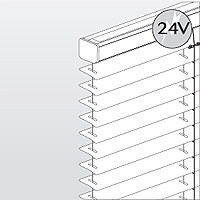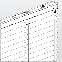 Die 25 mm Jalousie eignet sich für die Montage an Fenstern von 0° bis 45° Dachneigung. Die Jalousie wird bis 80 cm Breite mit einem Spannseil links und rechts gefertigt. Zur Stabilisierung wird die Jalousie ab 80 cm Breite mit einem dritten Spannseil in der Mitte der Jalousie ausgestattet. Die Lamellen sind zwischen den Stegen der Leiterkordel eingefädelt. Die Bedienung der Jalousie erfolgt mittels Schnurzug und Plexi-Drehstab. (Sonderausführungen auf Anfrage)